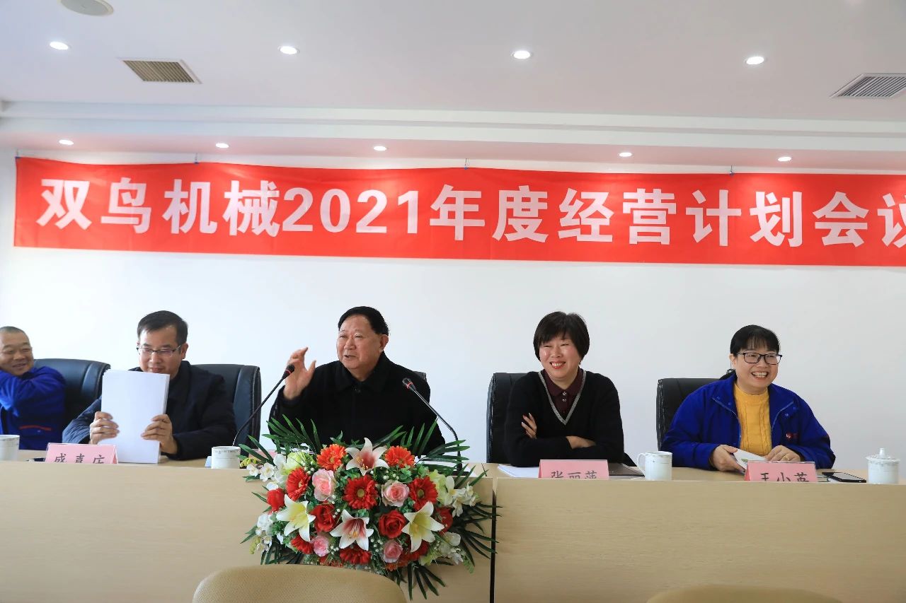 大會在嘹亮激越的《雙鳥之歌》歌聲中拉開帷幕。本次大會分四個階段,第一階段是宣布2021年度公司干部聘任文件,接著兩位新任干部代表作了慷慨激昂的發(fā)言。第二階段由財務(wù)總監(jiān)王小英作財務(wù)年度報告,王總監(jiān)的報告以詳實的數(shù)據(jù)闡明了2020年度雙鳥機(jī)械取得的不俗業(yè)績。第三階段進(jìn)行誓師簽約,分別由盛總和三大營銷經(jīng)理簽訂軍令狀,制造部經(jīng)理張斌和各車間主任簽訂責(zé)任狀。立下軍令狀,吹響沖鋒號,東風(fēng)吹,戰(zhàn)鼓擂,必將激勵雙鳥將士乘長風(fēng)破萬里浪,高奏凱歌還。會議壓軸階段是領(lǐng)導(dǎo)講話。首先盛總作主旨發(fā)言。盛總在發(fā)言中回顧了不平凡的2020年,提出了2021年的目標(biāo),并對全體員工提出了安全第一、客戶至上、誠信正直、持續(xù)改善、顧全大局、團(tuán)隊合作、不斷學(xué)習(xí)的要求。最后張董作重要講話。張董指出,一是非常之年取得非常之業(yè)。銷售利潤實現(xiàn)雙增長,公司成為中國重型機(jī)械工業(yè)協(xié)會副理事長。成績榮譽(yù)來之不易,難能可貴。二是不想當(dāng)將軍的士兵不是好士兵。每個人都要敢于當(dāng)頭,勇于爭先,不斷努力,出類拔萃。就像剛才簽下的軍令狀,簽下就要兌現(xiàn),說到就要做到。三是要處理好安家立業(yè)這兩件人生大事。作為老板要選好產(chǎn)業(yè),作為員工要選好行業(yè),大家都要經(jīng)營好各自事業(yè)和家庭。成家立業(yè),安居樂業(yè)。張董最后希望大家互相學(xué)習(xí),互相促進(jìn),互相提升,創(chuàng)造更大輝煌。